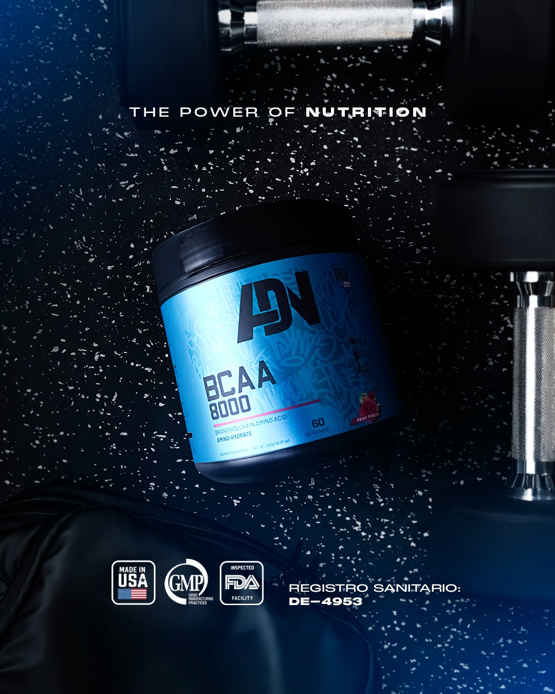 BCAA 8000 de ADN USA forma parte de una línea de suplementos deportivos que complementan el entrenamiento y la nutrición de personas activas y deportistas exigentes.
